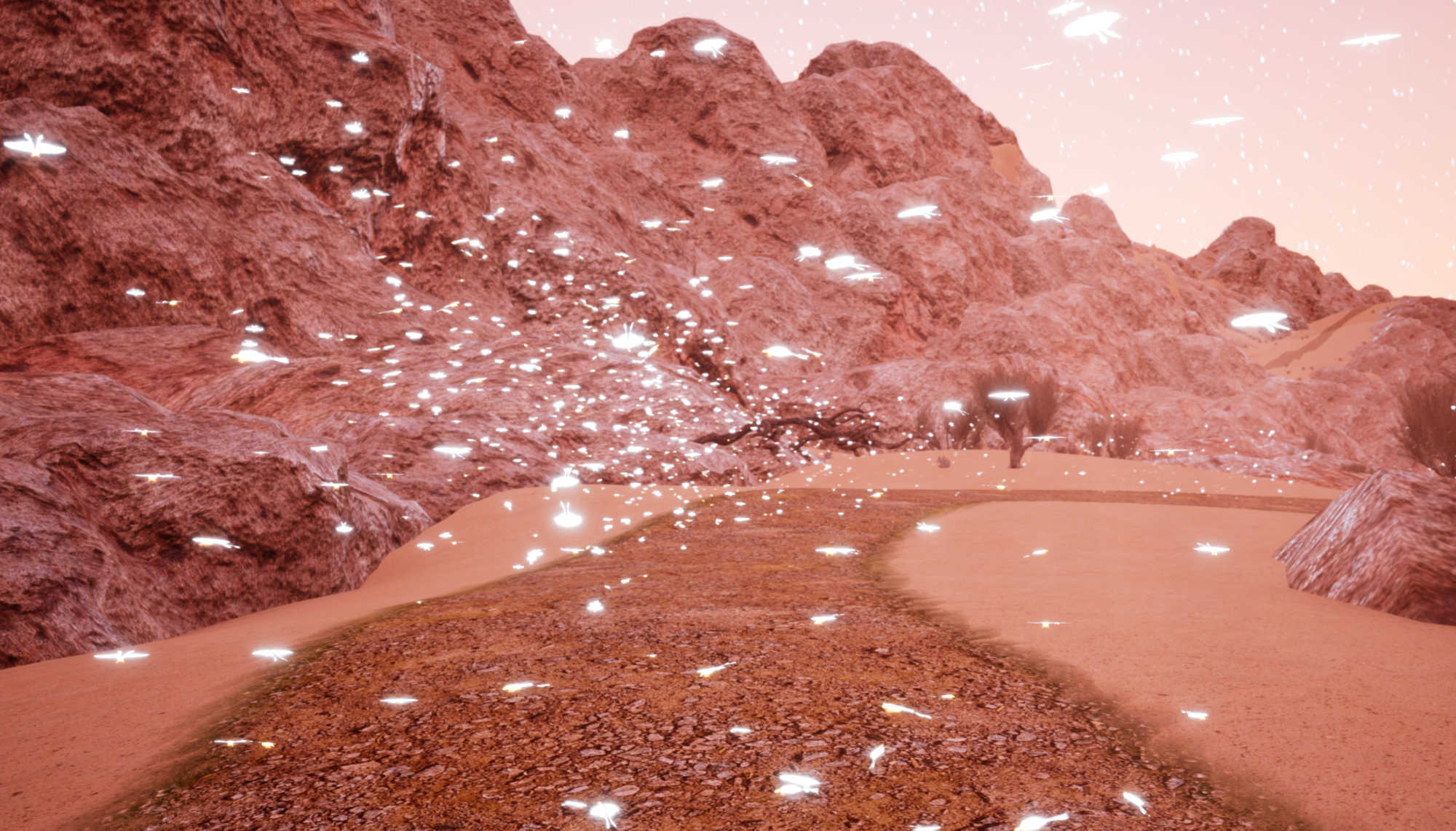 between a tree