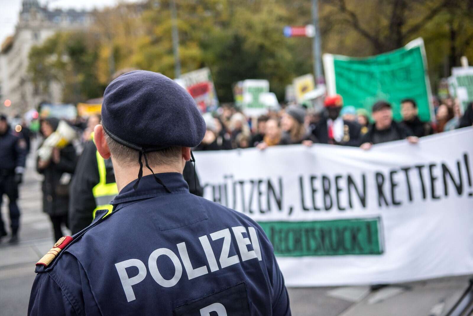 Ort: Banner auf Baustellenzäunen im öffentlichen Raum